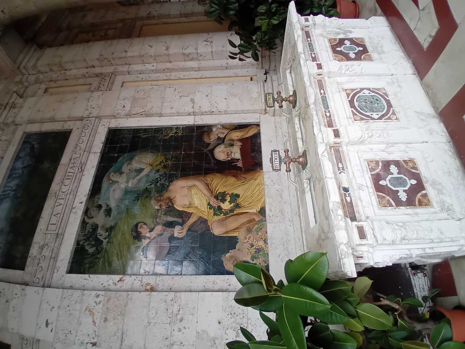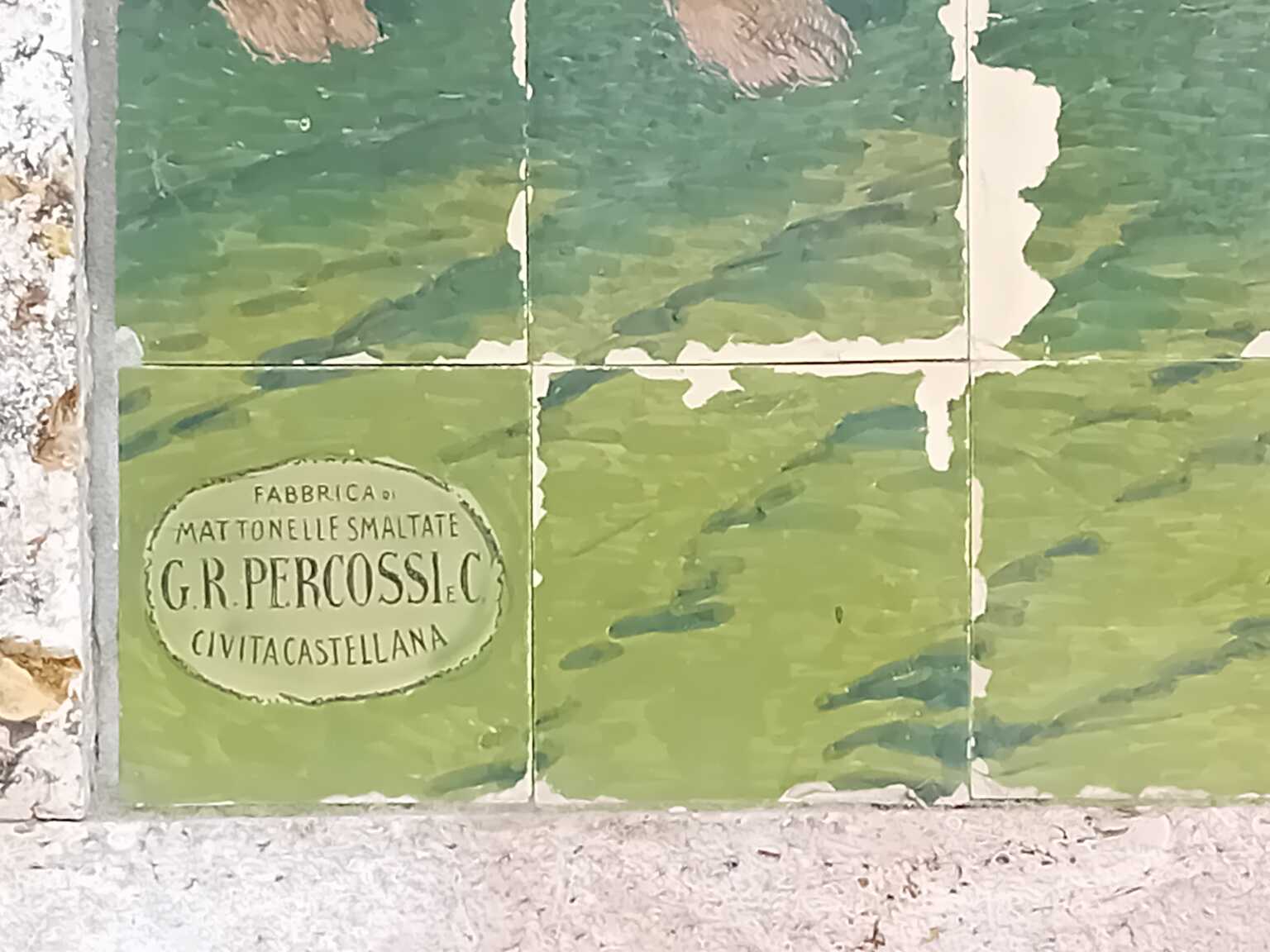 Nel pannello ADOLESCENZA, sulla mattonella posta nel vertice in basso a sinistra, è riprodotto lo stemma della "Fabbrica Mattonelle Smaltate G.R. Percossi e C. Civita Castellana".