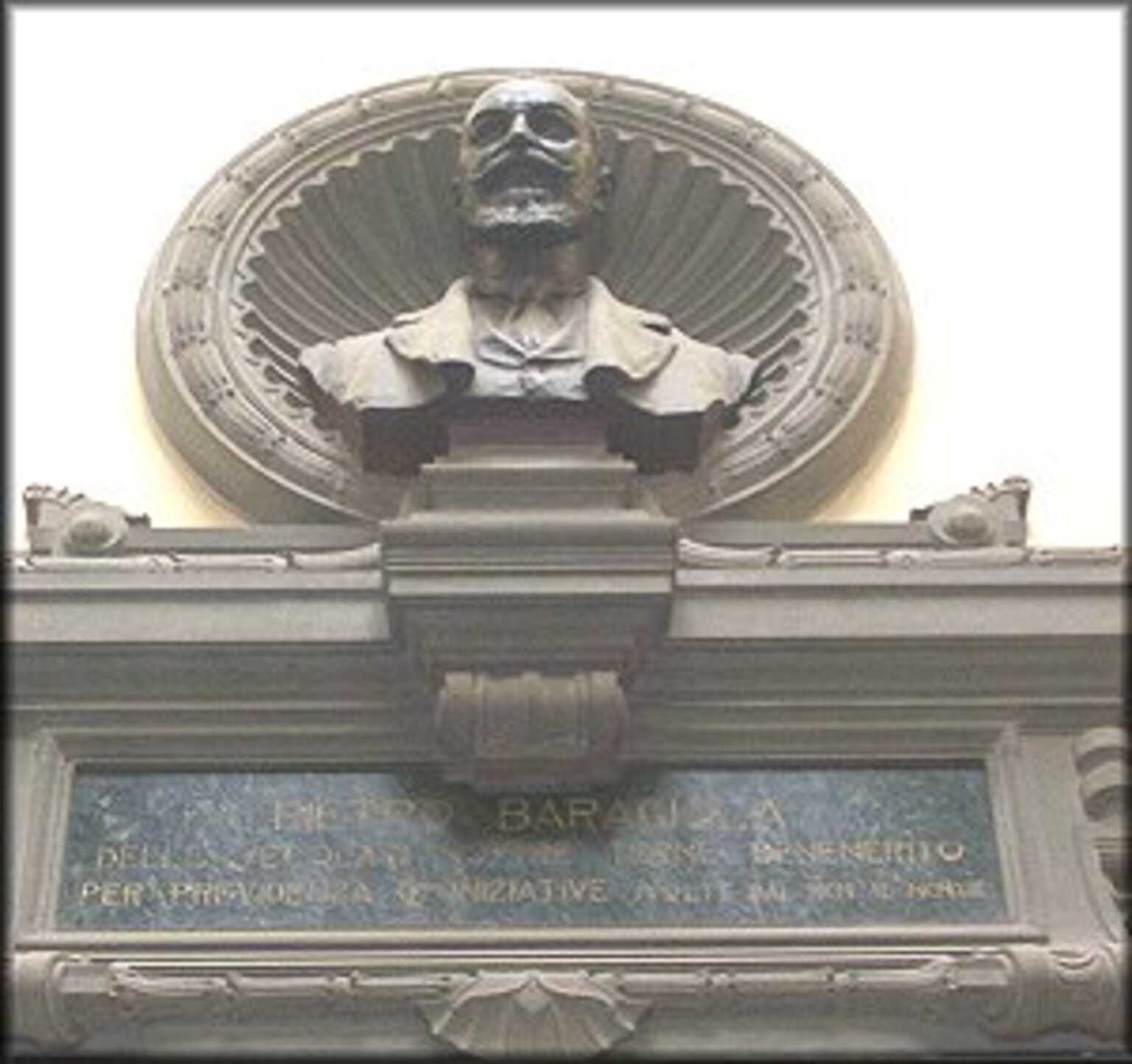 Salendo le scale del palazzo municipale, sul primo ballatoio dove lo scalone si divide in due rampe, campeggia il busto dedicato a Pietro Baragiola.