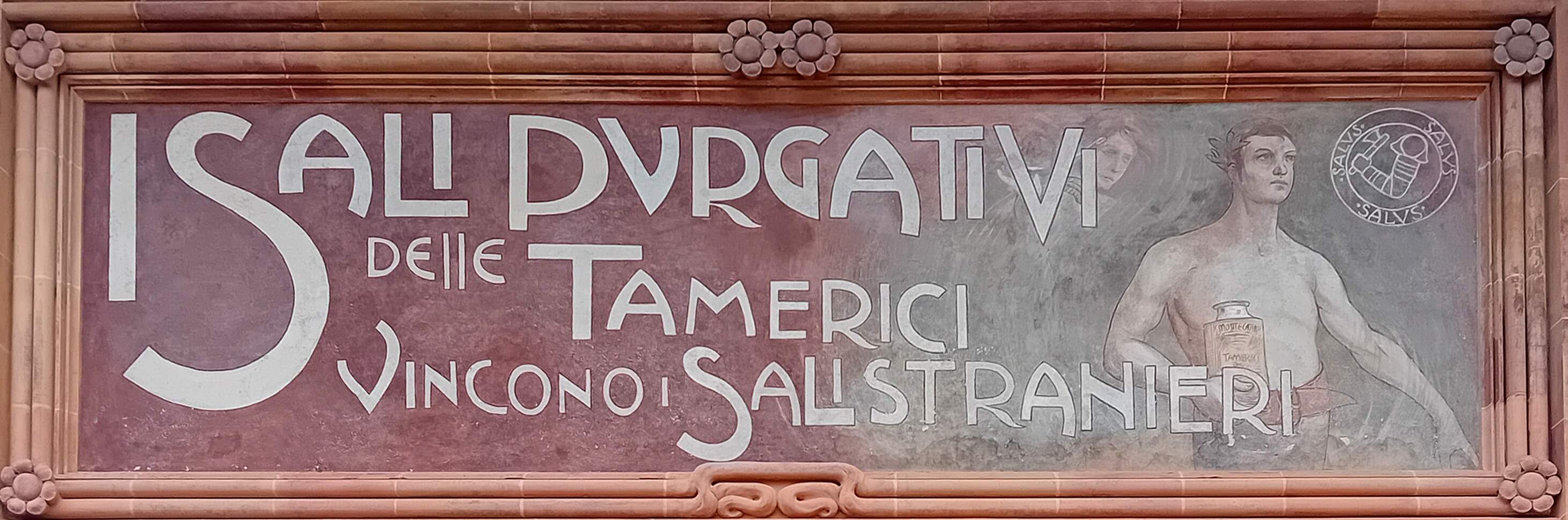 Ancora oggi è visibile, sul lato che da sull’ingresso dell’omonimo Teatro, la scritta pubblicitaria “I SALI PURGATIVI DELLE TAMERICI VINCONO I SALI STRANIERI”.